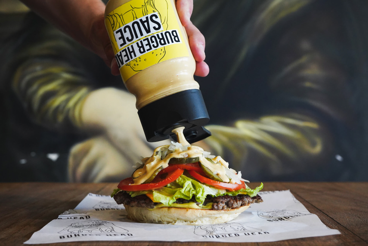 A bottle of BH Sauce. The best sauce you can use to cook amazing burgers!